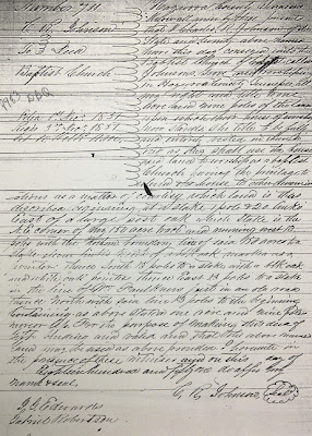 Know all men by these ? that I Charles R. Johnson of the state and county above ? have this day ? unto the Baptist Church of ? called Johnsons Grove and worshiping in Haywood County Tennessee may right and title to one acre and nine poles of the land upon which this house of worship now stands. The title to be fully and entirely vested in through long as thoz shall use the house and land to worship as a Baptist church having the privilage to extend the house to other denominations as a matter of ? which ? in this ? beginning at a…