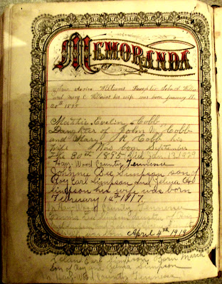 I think about the men and women who took the time to write in these Bibles and their motivation for recording the milestones of their family. Of course, they were assuming someday someone would want to know the births, marriages and deaths that took place. By writing these things down, they were communicating with those curious family members who would come along many years later.