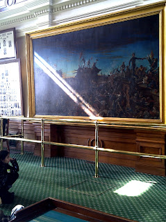 As we entered the Texas Senate Chamber, I noticed a large painting of the battle of the Alamo on the back wall. Unfortunately, a beam of light from a window above slides over the painting each day as the sun passes over the courthouse. I’m not going to tell the good people of Texas what to do with their paintings, but that’s not very good for any artifact.